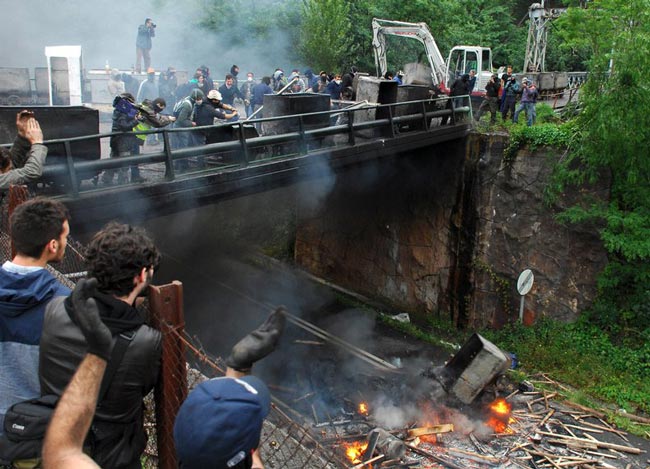 کارکنان معدن در شمال اسپانیا در اعتصاب خود جاده را بسته اند