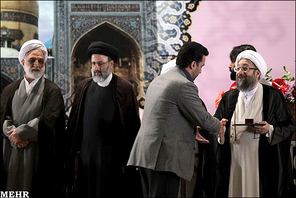 در مراسم تقدیر از برگزیدگان قضا آیت االله آملی لاریجانی، محسنی اژه ای، رئیسی و گرکانی هدایا و لوح های تقدیر را به کارکنان و قضات برتر اهدا کردند.