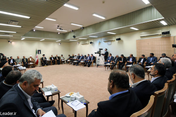 حضرت آيت الله خامنه ای رهبر معظم انقلاب اسلامی صبح پنجشنبه در ديدار رئيس جمهور و اعضای هيأت دولت ضمن برشمردن برخی نقاط قوت دولت، اقتصاد مقاومتی را تنها راه ادامه روند پيشرفت كشور دانستند و تأكيد كردند: استفاده از همه ظرفيتهای بخشهای دولتی و غيردولتی، اهتمام جدی به حل مشكلات معيشتی مردم، مبارزه با مفاسد اقتصادی، حمايت از توليد ملی و مبارزه با اسراف از لوازم اقتصاد مقاومتی است.