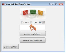 نرم افزار SaiedSoft ShutDown System این امکان را به شمان می دهد که شما با دادن ساعت یا دقیقه یا ثانیه سیستم خود را خاموش نمایید