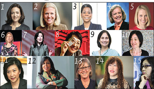 در فهرست صد تایی که مجله فوربس به تازگی از قدرتمندترین زنان دنیا در سال 2012 منتشر کرده است، پانزده نفر از مدیران تکنولوژی قرار دارند.