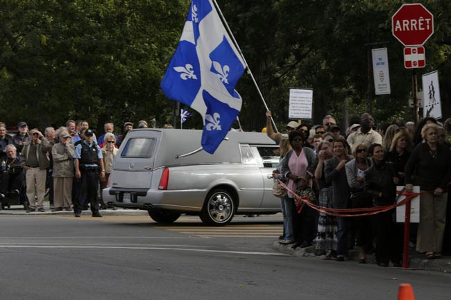 مراسم تشییع " دنیس بلانچت " فردی که در مراسم جشن پیروزی جدایی طلبان کانادا در کبک با حمله یک فرد مسلح از پای در آمد (مونترال ایالت کبک)