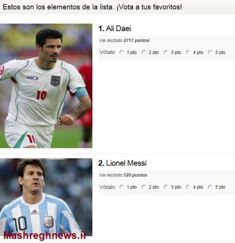 مشرق - یک سایت اسپانیایی برای انتخاب از میان چهرههایی چون علی دایی، جکی چان، مسی، فدرر، دیوید بکهام و... یک نظرسنجی گذاشته است.