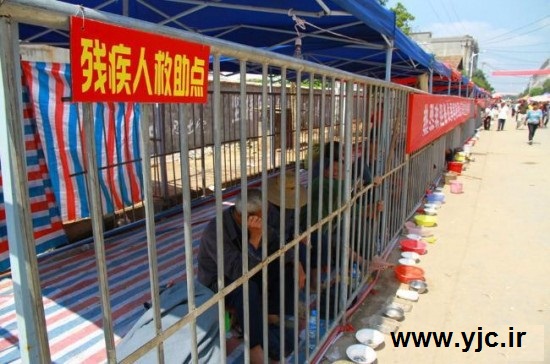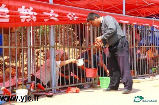 در یکی از شهرهای جنوبی چین که یک مراسم مذهبی در جریان بود مسئولین برای اینکه مردم از دست متکدیان راحت باشند آن ها را در داخل قفس های آهنی قرار داده اند.