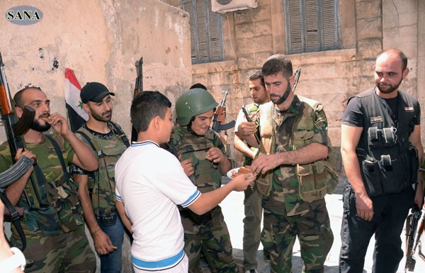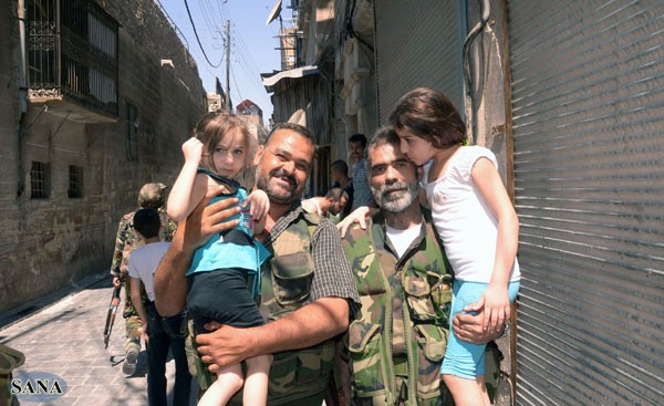 استقبال از نیروهای ارتش توسط مردم حلب - منبع: خبرگزاری رسمی سوریه (سانا)
