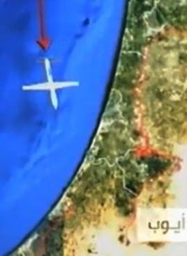 گرافیک عبور پهپاد ایوب از فراز ناوگان دریایی آمریکا در مدیترانهپهپاد ایوب -که با نام اولین فرمانده شهید پدافند هوایی مقاومت نامگذاری شد- این پیام ها را به اسراییل مخابره کرد: