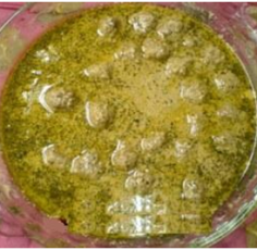 گوشت را با دو عدد پیاز رنده شده و کمی نمک و فلفل مخلوط می کنیم و کوفته ریزه درست می نمائیم. روغن را در ظرفی می ریزیم وکوفته ها را در روغن کمی تفت می دهیم.
