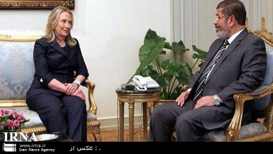 هیلاری کلینتون وزیر امور خارجه آمریکا روز چهارشنبه با محمد مرسی رییس جمهوری مصر در قاهره دیدار کرد تا مساله برقراری آتش بس احتمالی در غزه را مورد بحث و بررسی قرار دهند.
