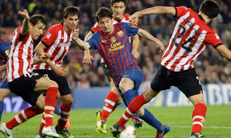 گل اول این بازی را پیکه در دقیقه 22 به ثمر رساند. سه دقیقه بعد، لیونل مسی بارسا را دو بر صفر پیش انداخت. زننده گل سوم بارسا، آدریانو بود که در دقیقه 45، کار بیلبائو را در همان نیمه اول تمام کرد.