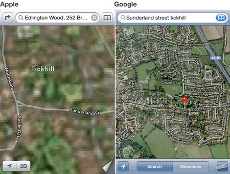 این شرکت سپس روابط خود را با گوگل قطع و اعلام کرد و پس از طراحی سیستم عامل iOS 6 صرفا خدمات نقشه اختصاصی خودش را ارائه می‌دهد اما زمانی که کاربران استفاده از این خدمات را آغاز کردند متوجه نقص‌های فنی و اطلاعات اشتباه آن شدند.