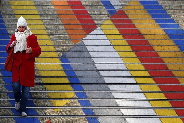 تفریح در یک نقاشی سه بعدی! جاکارتا، اندونزی پله های رنگ آمیزی شده در مقابل یک موزه در وین، اتریش "برای مشاهده آلبوم تصاویر کلیک کنید"