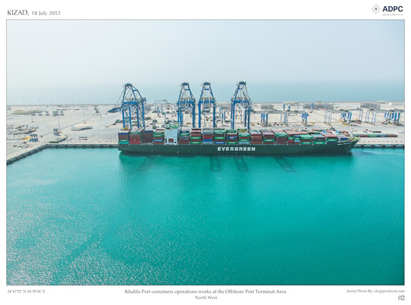 سلطان احمد جابر رئیس هیئت مدیره شرکت بنادر ابوظبی در این باره گفت: این بندر برای ارسال و دریافت همه کالاها آمادگی دارد اما بر پهلوگیری کشتی های غول پیکر متمرکز است. همچنین عمق حوضچه این بندر و کانال ورودی 16 متر است که تا 18 متر قابل افزایش است.