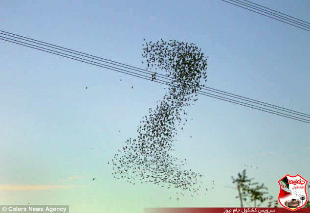 حدود ساعت 4:10 اولین گروه از پرندگان رسیدند و در مدت چند دقیقه آسمان پر شد از هزاران سار که دور هم می چرخیدند.