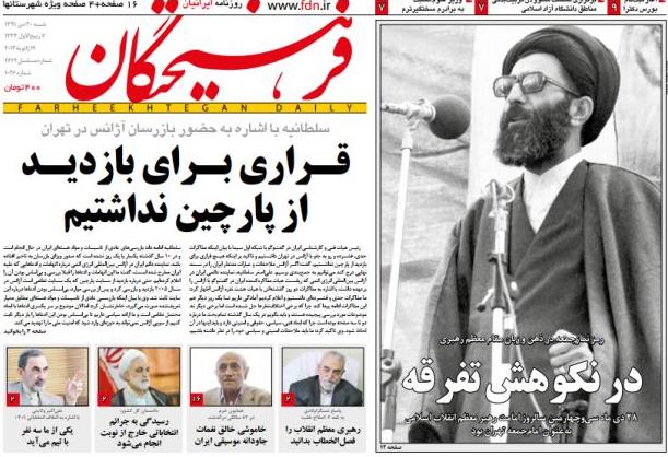 عصر ایران - روزنامه فرهیختگان به مناسبت 28 دی و سی و چهارمین سالروز اقامه نماز جمعه تهران توسط حضرت آیت الله خامنه ای تصویری از نخستین نماز جمعه ایشان را بر روی صفحه نخست چاپ کرده است.