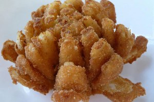 وقتی پیازها خشک شدن، پیاز رو توی آرد بزنید و بعد توی سفیده کف کرده فرو برده و بعد به پودر نان سوخاری آغشته کنین و بعد با اسپری روغن بهشون بپاشین و داخل سینی فر بذارین.