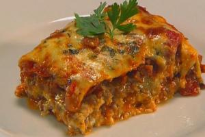 این لایه‌ها را تكرار كنید. روی آخرین لازانیا فقط رب و پنیر بریزید.
