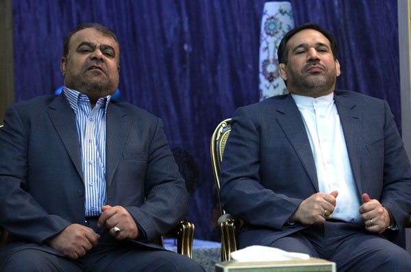حسینی و قاسمی ، وزرای اقتصاد و نفت / مراسم بدرقه احمدی نژاد قبل از عزیمت به مصر