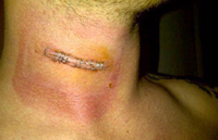 ایسنا -  دنیس سوالس 27 ساله که اکنون دو مهره پشت کمرش شکسته و از ناحیه گردن به شدت آسیب دیده در بیمارستان بستری شده است. بدشانسی این بازیکن تمامی نداشت و پس از شیرجه ناشیانه او به زمین و شکستگی گردن و مهره کمرش یکی از هم تیمی‌هایش که نمی‌دانست، او مصدوم شده است، روی او پرید تا مصدومیت این بازیکن وخیم‌تر شود. پزشکان این بازیکن 27 ساله آماتور می‌ترسند که او دیگر نتواند راه برود و قطع‌نخاع شود.