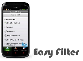 با کمک نرم افزار Easy Filter می توانید تماس های ناخواسته و شماره های ناآشنا را فیلتر کنید و دیگر نگران مزاحمت های دیگران نباشید. تنها کافیست تا شماره ی مورد نظرتان را در لیست سیاه این نرم افزار وارد کنید، در این برنامه این امکان را خواهید داشت تا آمار تعداد دفعاتی که شماره های مسدود شده با شما تماس می گیرند را مشاهده کنید، و به آن ها دسترسی کامل داشته باشید، همچنین می توانید برای امنیت بیشتر بر روی این نرم افزار قفل بگذارید و از حریم شخصی خود دفاع کنید.