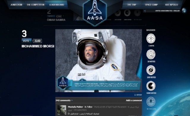 یک گروه مخالف دولت مصر یک راه جدید برای اعلام اعتراض خود نسبت به «محمد مرسی» انتخاب کردند، ثبت نام مرسی برای برنده شدن شانس سفر به فضا.