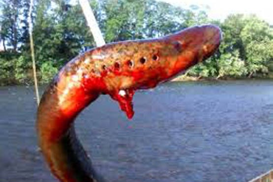 به گزارش جام جم آنلاین به نقل از جنتساید، دوگ كاتلر ماهیگیر آمریكایی در رودخانه راریتان ریور در نیوجرسی نوعی هیولای دریایی را به كمك تیر و كمان صید كرد. ظاهر آن شبیه یك زالوی غول پیكر با دندان هایی مانند موجودات فضایی است. این جانور به ویژه به دلیل اینكه در آب های شیرین زندگی می كند هراس آور است.