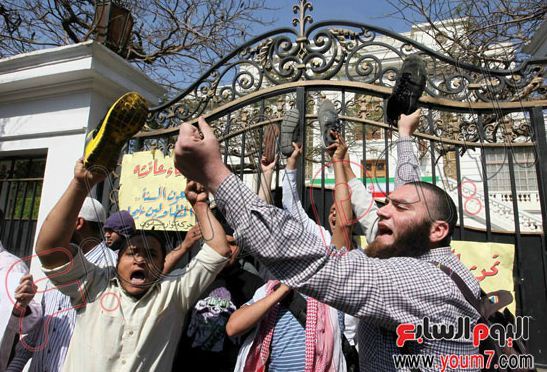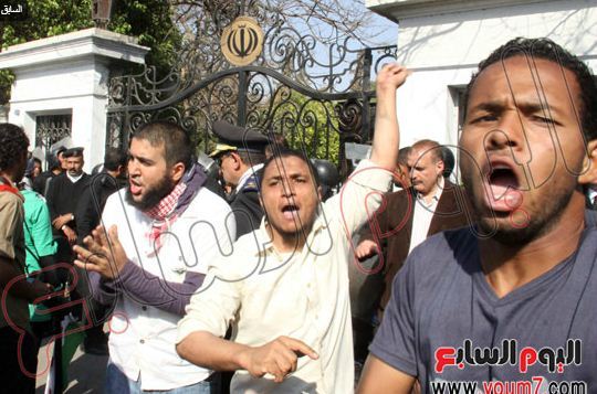 تجمع افراط گرایان مقابل اقامتگاه حافظ منافع ایران در قاهره (عکس)