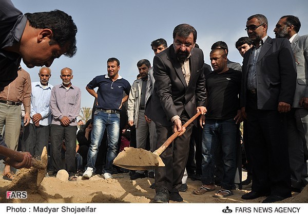 محسن رضایی در مراسم خاکسپاری جانباختگان زلزله در خورموج حضور یافت و با زلزله زدگان دیدار کرد.