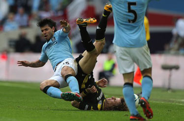 در یکی از صحنه های این دیدار، مهاجم آرژانتینی من سیتی بر روی "داوید لوییس" تکل خشنی انجام داد که داور از کنار آن گذشت. لوییس گفت به خاطر این خطا که در دقایق پایانی بازی روی داد، آگوئرو را می بخشد اما این بازیکن باید با خودش صادق باشد.