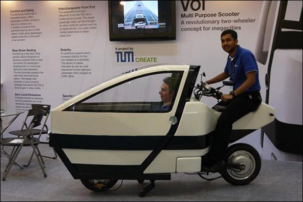 به گزارش مهر، نمونه اولیه این وسیله نقلیه با نام Voi توسط دانشجویان دانشگاه فناوری مونیخ با همکاری موسسه فناوری نانیانگ سنگاپور ساخته شده که در سومین نمایشگاه بین المللی اتومبیلهای الکترونیک تایوان رونمایی شده است.