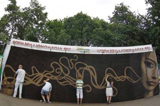 جام نیوز - این شاهکار هنری توسط هنرمند معروف روسی Arkadi Kim به طول تقریبا 30 متر با بیش از یک میلیون دانه قهوه ایجاد گردیده است.