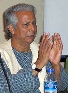 یونس ، بانکدار و اقتصاددان بنگلادشی. او خالق "وام خرد" ، نوعی وام کوچک برای بیکاران و تاجران فقیر و همچنین موسس بانکی به نام گرامین بانک است.
