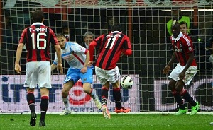 ویدال مارکیسیو به گل رسیدند تا با ثبت 2 بر صفر یووه تا قهرمانی و فتح اسکودتو فقط 2 امتیاز فاصله داشته باشد.در دیگر دیدار مهم هم میلان در حالی در سن سیرو کاتانیا را با نتیجه جالب 4 بر 2 شکست داد گه شاگردان آلگری در خانه 2 بار از حریف نه چندان مطرح خود عقب افتادند.کاتانیا در دقیقه 30 و گونسالو در دقیقه 65 دو گل کاتانیا را زدند و متیو فلامینی، پاترینی در دقایق 45، 74 و 77 و بالاخره بالوتلی در دقیقه 92 زننده گلهای میلان بودند.همچنین در ادامه هفته 34 سری آ، اینترمیلان در خانه پالرمو با نتیجه یک بر صفر شکستی دیگر را متحمل شد و تیم های فیورنتینما و رم به ترتیب با نتیجه 3 بر صفر سمپودریا و 4 بر صفر رم را شکست دادند.کیه وو 0-1 جنواپالرمو 1-0 اینترپارما 0-0 لاتزیورم 4-0 سیه ناسمپدوریا 0-3 فیورنتیناتورینو 0-0 یوونتوسمیلان 4 - کاتانیا 2