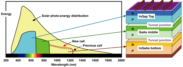 شارپ در حقيقت با بهينهسازي نسبت تركيبي اين عناصر، موجب بالارفتن بهرهوري تاحدي شده كه سلولهاي خورشيدي حاصل بتوانند نور را در هر طول موجي جذب و به الكتريسيته تبديل كنند.