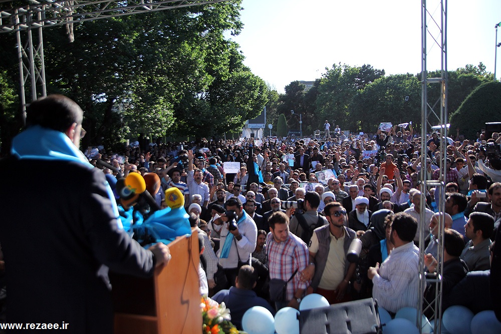 این میتینگ ، در عین حال ، نخسیتن رویداد تبلیغی در فضاهای عمومی و باز شهر تهران در انتخابات یازدهم ریاست جمهوری است ؛ پیش از این همه آیین های تبلیغاتی کاندیداها ، در فضاهایی مانند مساجد ، سالن های اجتماعات و دانشگاه ها و با دعوت قبلی و حضور افراد خاص برگزار شده است.