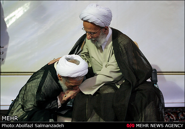 در حاشیه مراسم عمامهگذاری طلاب حوزه علمیه امام خمینی(ره) روز پنجشنبه با حضور آیتالله مصباح یزدی.