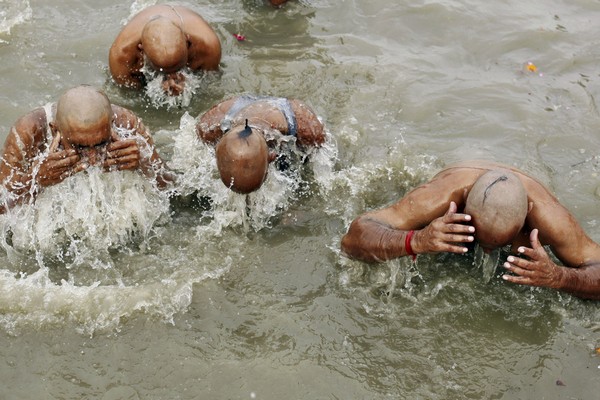 آیین سنتی شستشو در رودخانه گنگ در الله آباد هند