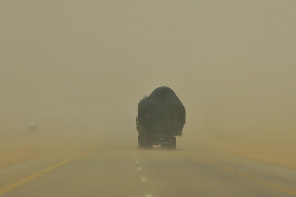 توفان شن در جاده ای در نزدیکی ریاض عربستان