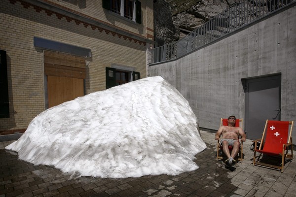 برف و به طور همزمان حمام آفتاب (سوییس)