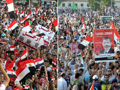 - بعد از سخنرانی مرسی، دهها هزار نفر از حامیان مرسی در میدان "رابعه العدویه" در شرق قاهره شعار دادند: "یسقط یسقط حکم العکسر" (حکومت نظامیان سرنگون باد)