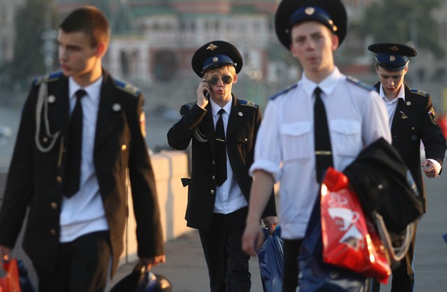 دانشجویان روس پس از جشن فارغ التحصیلی افسران دانشکده نظامی در مسکو