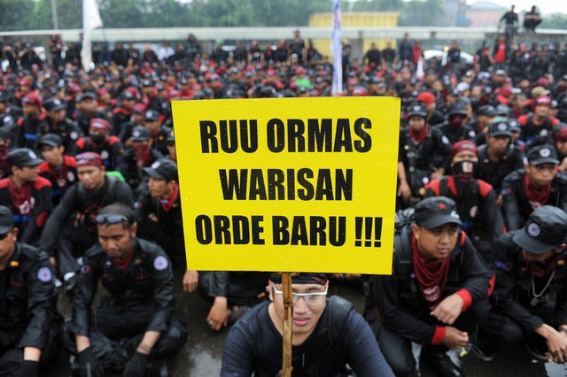 تحصن اعتراضی در مقابل پارلمان اندونزی در جاکارتا در اعتراض به تصویب یک لایحه
