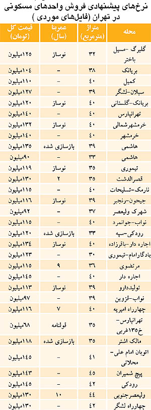 قیمت فروش واحدهای مسکونی در تهران (+جدول)
