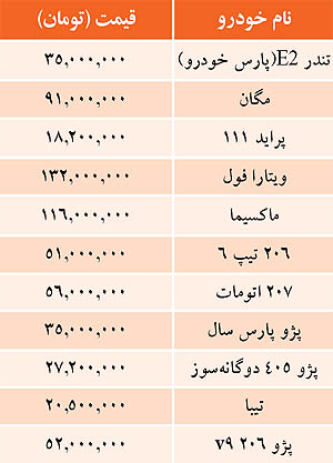 جدیدترین قيمت خودرو‌هاي داخلي در بازار (جدول)