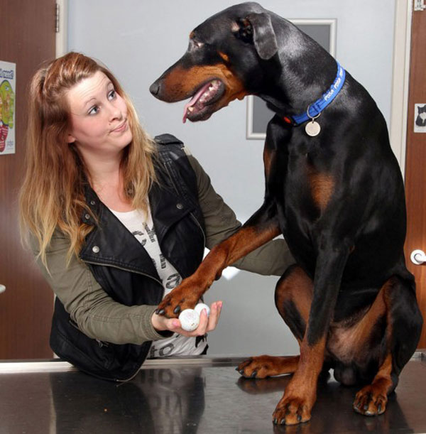 عصر ایران - این سگ نژاد دوبرمن در انگلیس وقتی 3 توپ گلف را می بلعد حالش بد می شود و صاحبش متوجه می شود که او روز به روز لاغرتر و نحیف تر می شود .