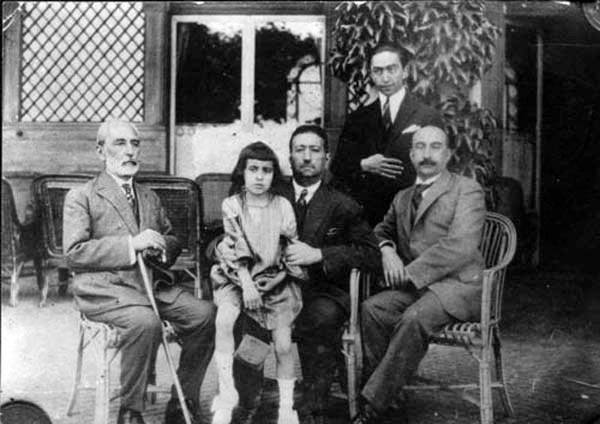 محمدعلی شاه (نفر وسط) در روزهای تبعید، پس از شکست در برابر مشروطه خواهان.