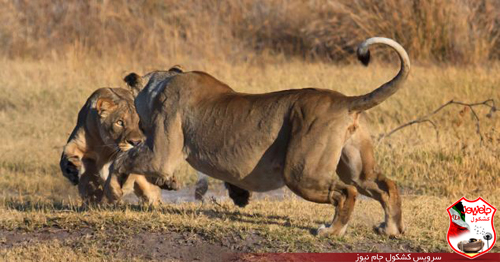 آنها که بسیار هم خوش شانس بودند شاهد دعوای شوخی مانند دو ماده شیر بودند.