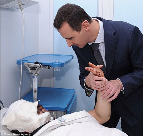 عکس های بشار اسد و "اسماء" همسرش ، دیدار آنها با زخمی شدگان جنگ داخلی سوریه و نیز دیدار آنها با اقشار مختلف مردمی را نشان می دهد.