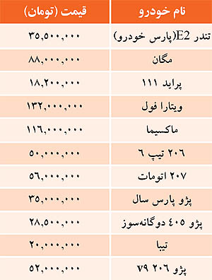 قيمت خودرو‌هاي داخلي در بازار (جدول)