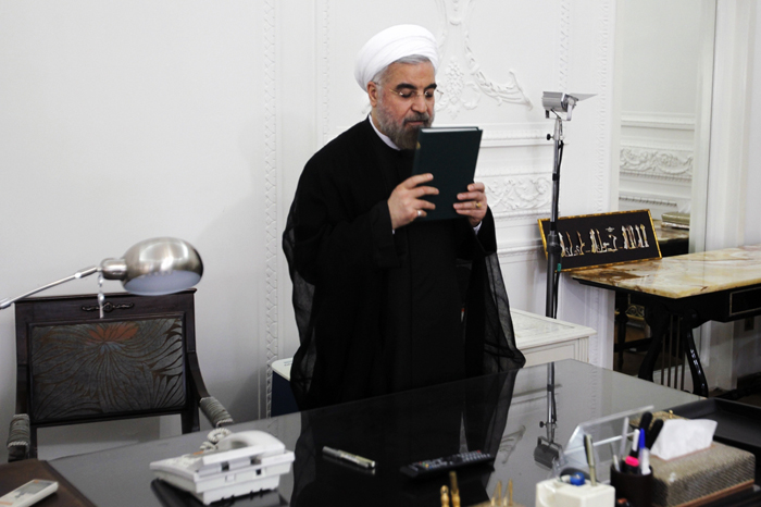 دکتر حسن روحانی ، بعد از ورود به اتاق رئیس جمهور ، قبل از نشستن بر روی صندلی ریاست جمهوری، به قرآن مجید تمسک کرد و کارش را آغاز نمود.