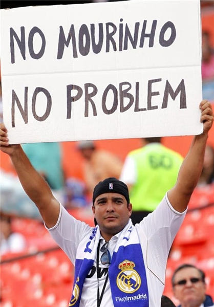 در این دیدار گروهی از هواداران تیم مادریدی با حضور در ورزشگاه برعلیه مورینیو شعارهایی را سر دادند و پلاکاردی هم خطاب به آقای خاص در دست داشتند با این عنوان که « مورینیو نیست، مشکلی نیست»